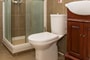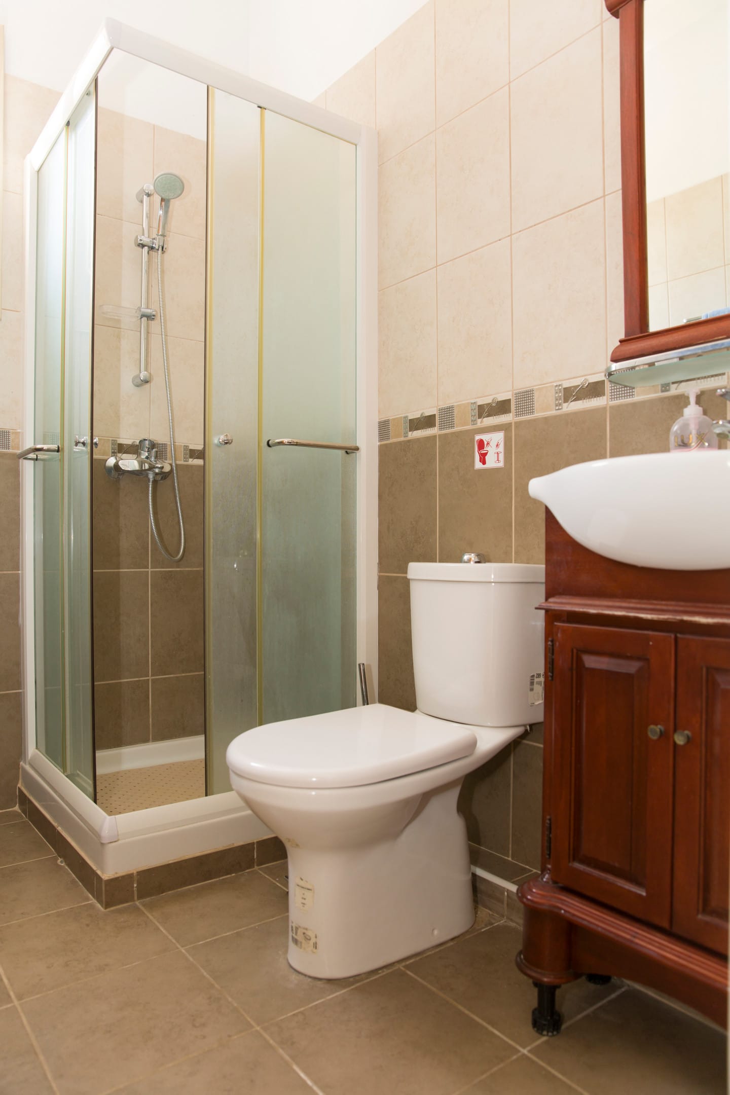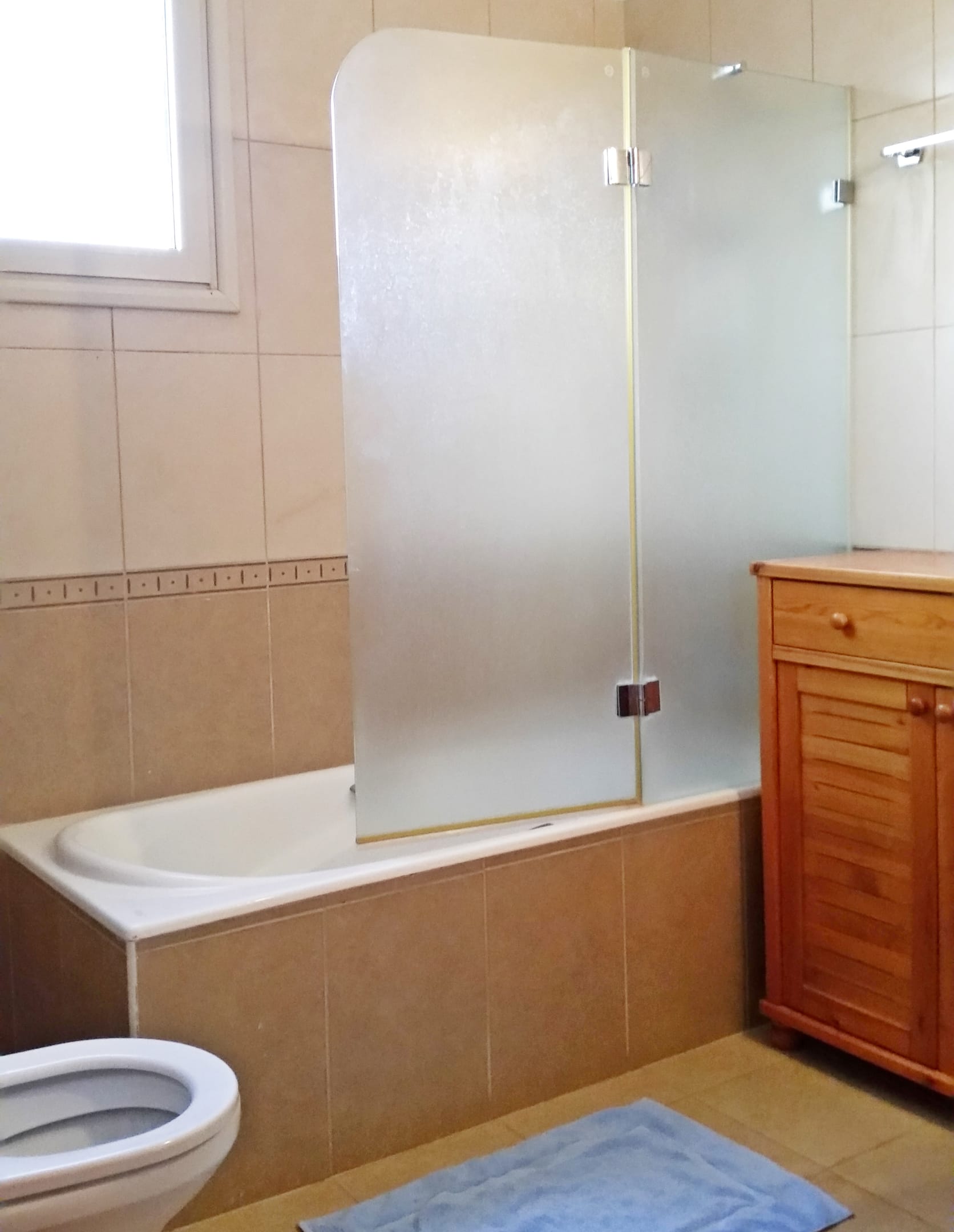 The villa offers 3 double bedrooms and a twin bedroom. The master double bedroom offers a king size bed with an en-suite bathroom. The two remaining double bedrooms share access to a communal shower room. The twin bedroom has access to an adjacent shower room. Each bedroom offers a hairdryer.