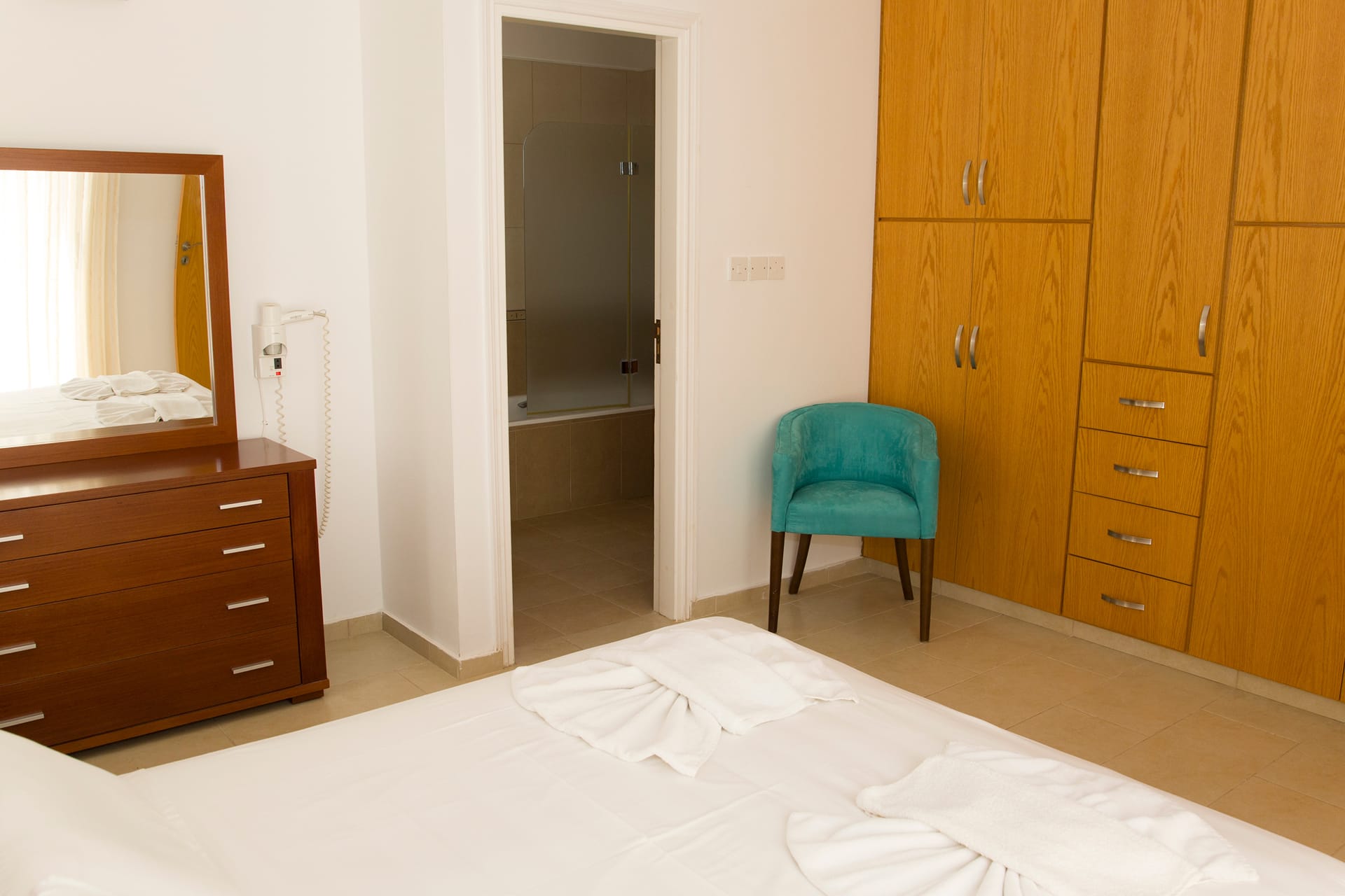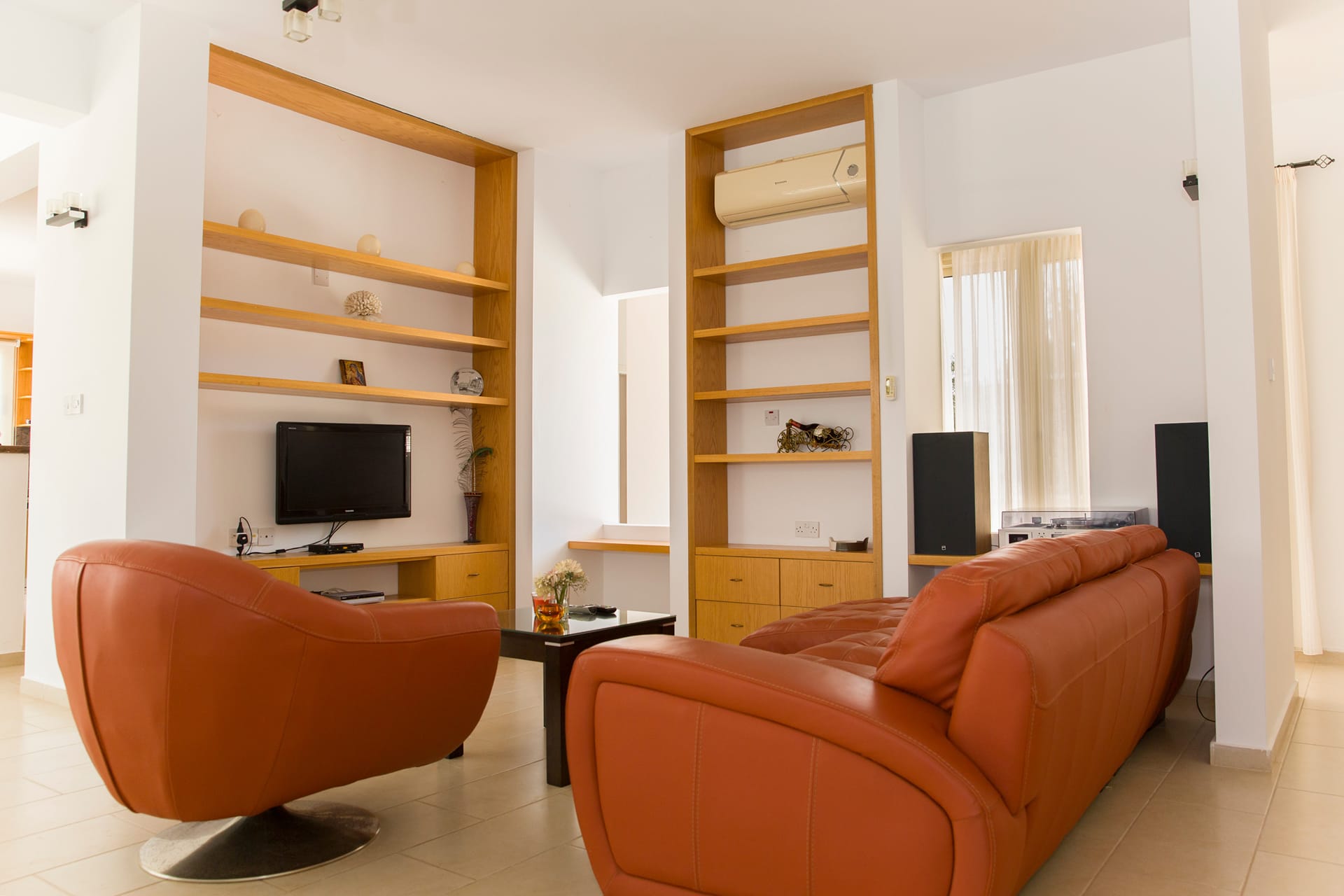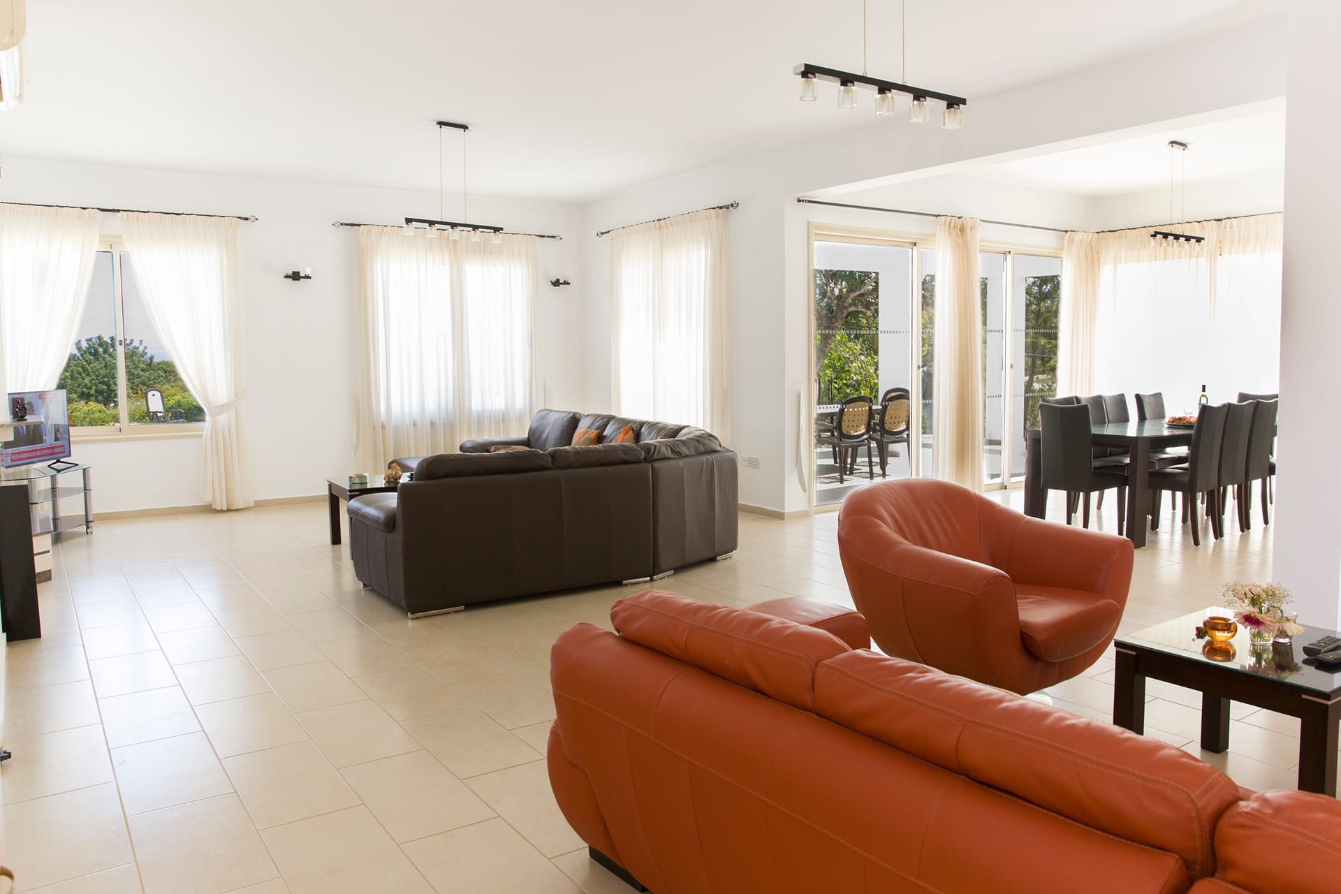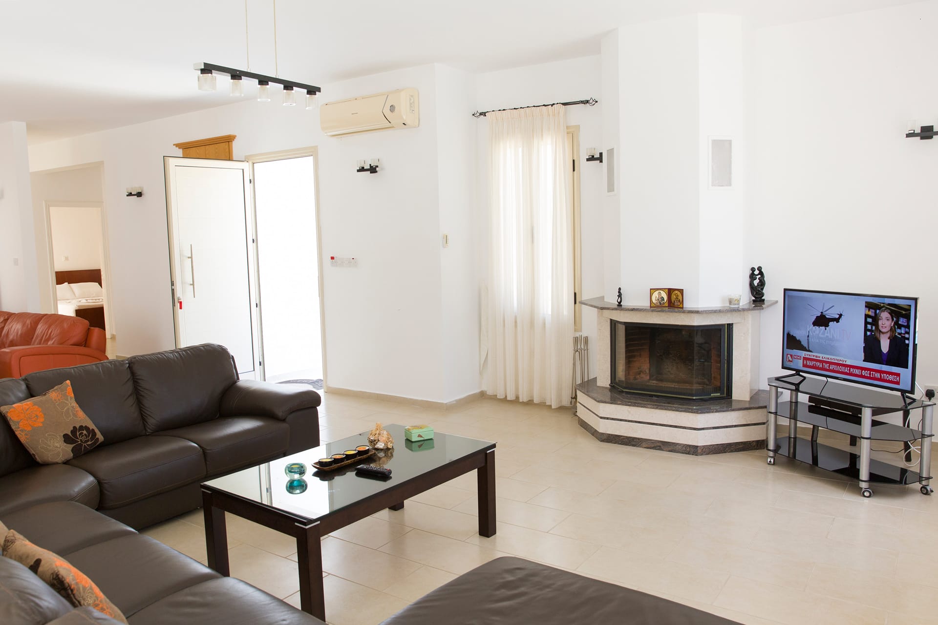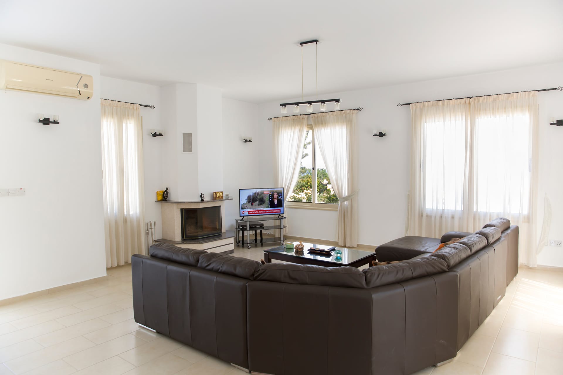 Outside, you will find the 11m x 5m swimming pool with roman steps surrounded by plenty of sun beds and umbrellas, perfect for soaking up the Cyprus sunshine.